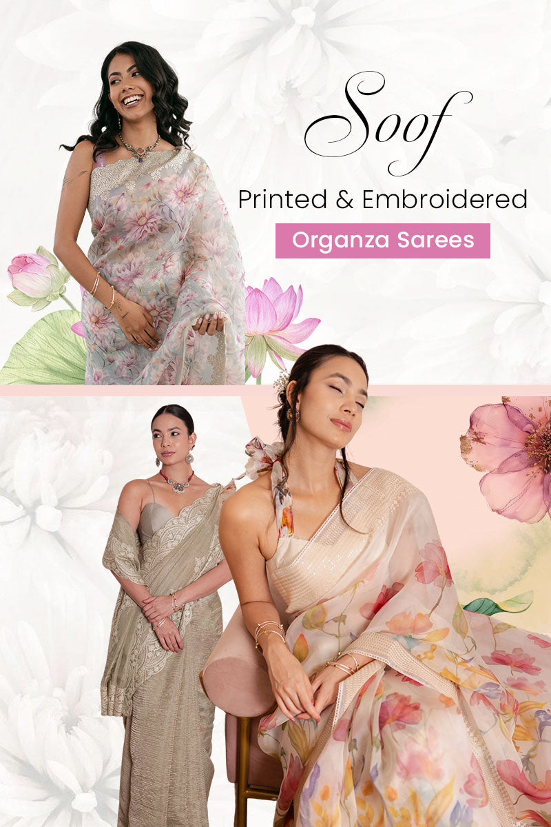 Blush Bloom Floral Organza Silk Saree with Embroidered Border
